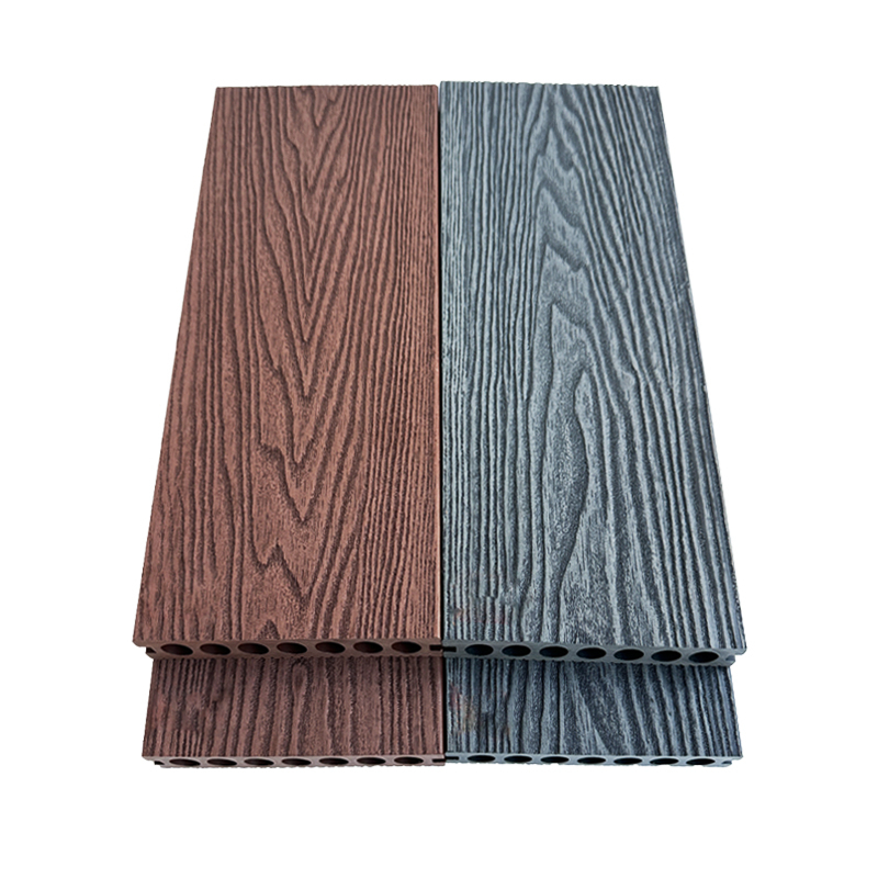 Thirdly, the surface treatment of 3D embossed decking that our factory uses 3M soft sanding cloth roller, the general factory is treated with sand belt. 3M soft roller treatment has the advantage that the surface 3D effect is real, and the peeling effect is good, the sand belt is peeled rough surface, strong plastic, the advantage is low processing cost.